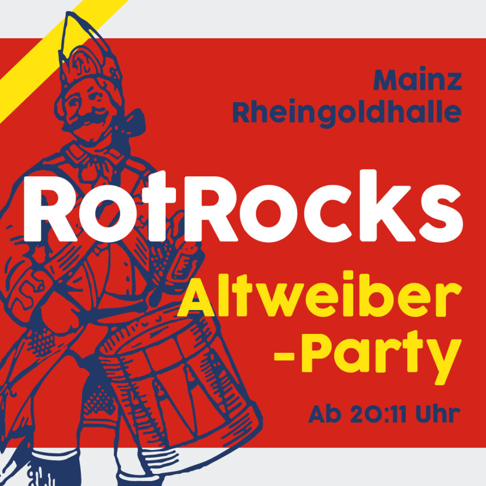 Sei dabei, wenn wir die RotRocks-Altweiberparty zum Beben bringen und das Nord- sowie das Ost-Foyer der Rheingoldhalle in eine ausgelassene Feiermeile verwandeln!